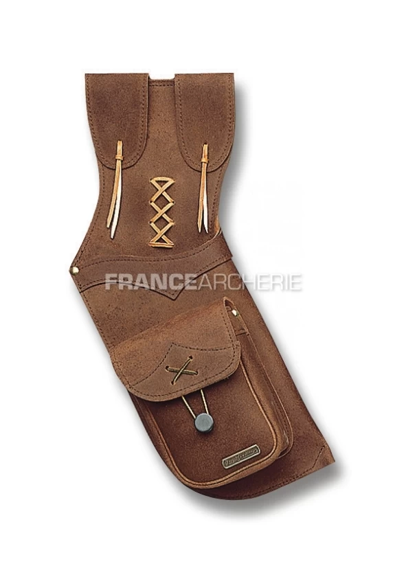 Carquois en cuir suédé, disponible en droitier ou gaucher.